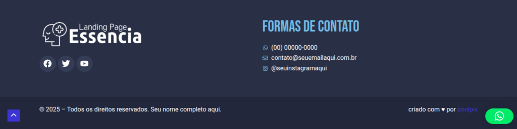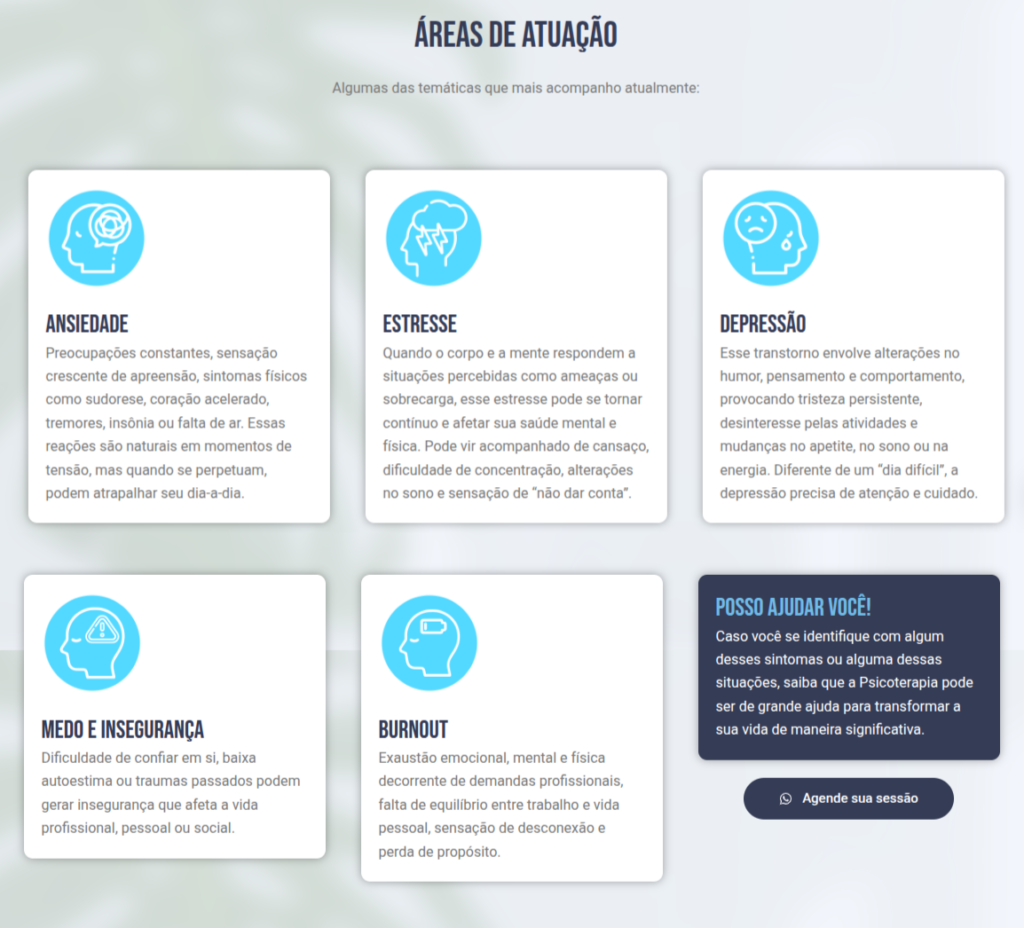 Pensado exclusivamente para Psicólogos e Terapeutas, o tema foi desenvolvido para comunicar confiança, clareza e profissionalismo.