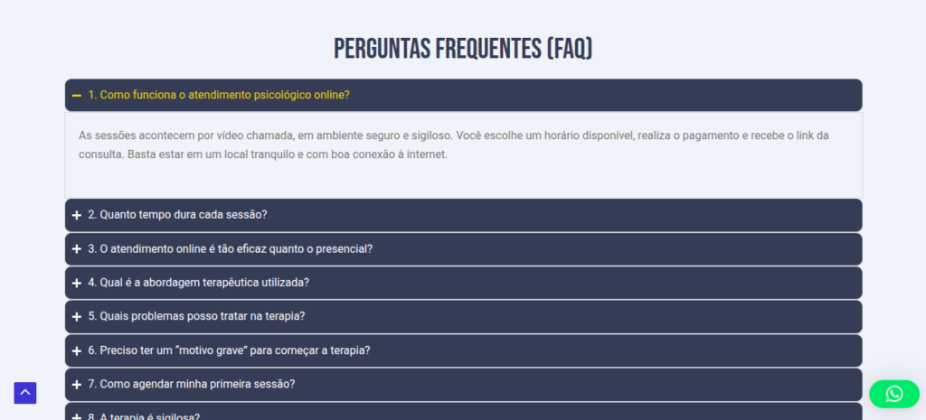 O site é um espaço seguro para explicar sua abordagem, ética, formações e áreas de atuação.